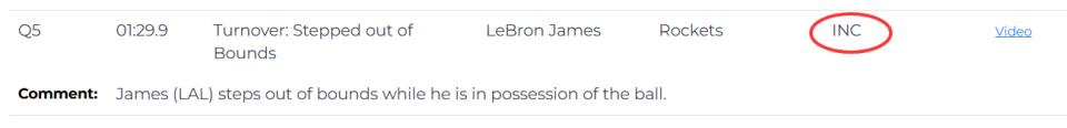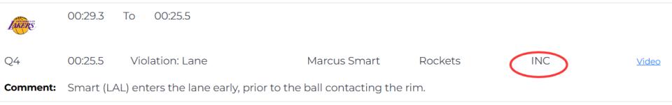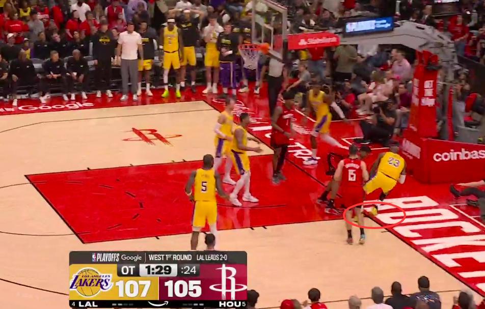 第二次漏判出现在加时赛结束前1分29秒。裁判报告称,詹姆斯在与火箭球员争抢时获得球权,但其脚部已处于界外,裁判未作判罚。虽然此漏判理论上使湖人获益,但詹姆斯将球救回后,火箭重新获得控球权。此次漏判对比赛的影响,较上一次更为轻微。