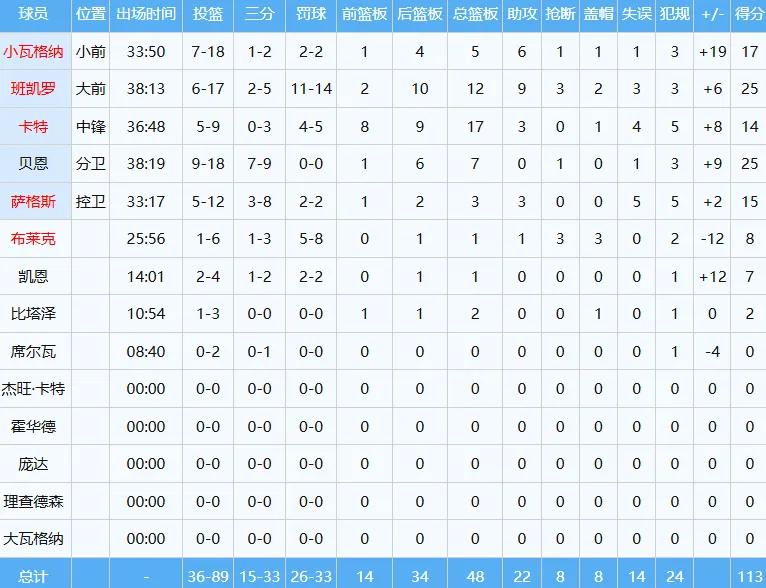 去年休赛期通过七换一交易获得的贝恩,化身东部库里,三分九投七中拿下25分及7篮板;22届状元班凯罗尽管进攻效率不高,但投中了锁定胜局的关键三分,全场17投6中,贡献25分12篮板9助攻3抢断2盖帽的全面数据。