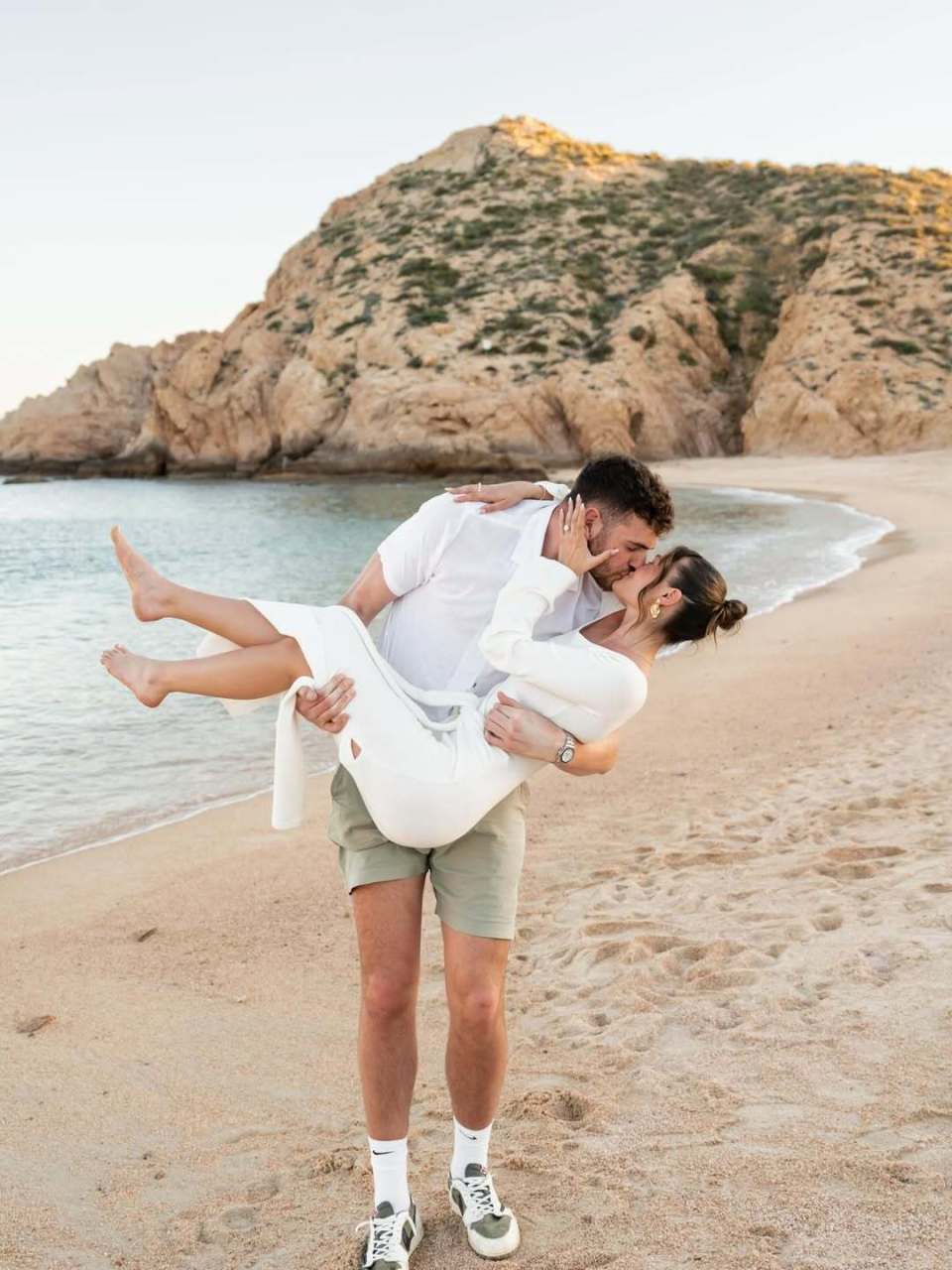 克林根在社交媒体上配文称:“永恒的爱。”照片中,两人站在美丽的海滩上,克林根单膝跪地求婚。玛德琳激动地戴上戒指并展示,两人甜蜜亲吻。