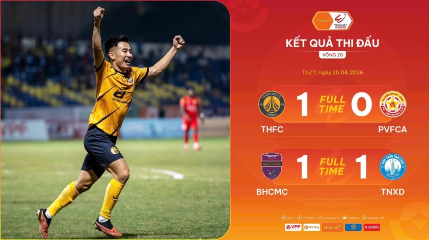 在4月25日的另一场比赛中,Becamex胡志明市队与南定队以1-1战平。Việt Cường在第3分钟帮助主队取得领先,随后Giáp Tuấn Dương在第67分钟为南定队扳平比分。这一结果使Becamex队扩大了与榜尾球队的安全距离,而南定队则错失跻身前五的机会,在排名争夺中继续面临困难。