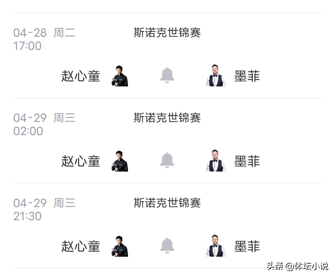 另外特别提醒,赵心童与墨菲三个阶段比赛的具体时间已确定,将于4月28日与29日两天进行。希望赵心童能顶住压力,好好应对爱发言的墨菲,全力争取胜利,加油!