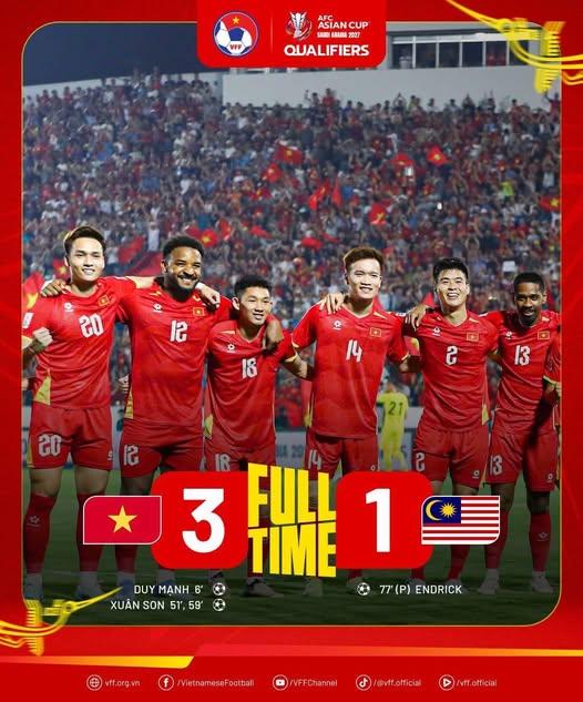 此前,3月31日,越南国家队也在2027亚洲杯预选赛最后一轮展现出 superior 实力,以3-1击败马来西亚。尽管开局谨慎并曾面对Faisal Halim的危险吊射,主场队伍仍凭借Duy Mạnh通过角球机会的首开纪录取得领先。 此后局势完全偏向越南。