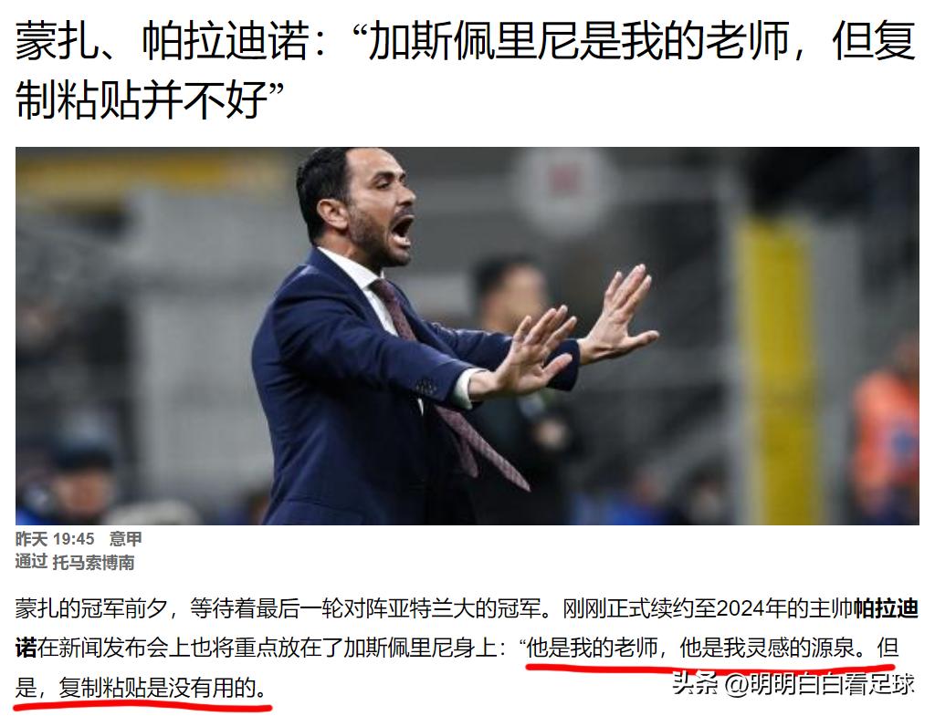 有句话说“知子莫若父”,别的球队或许不明白蒙扎为何如此强大,糊里糊涂就输了,但加斯佩里尼应该能看得清楚。