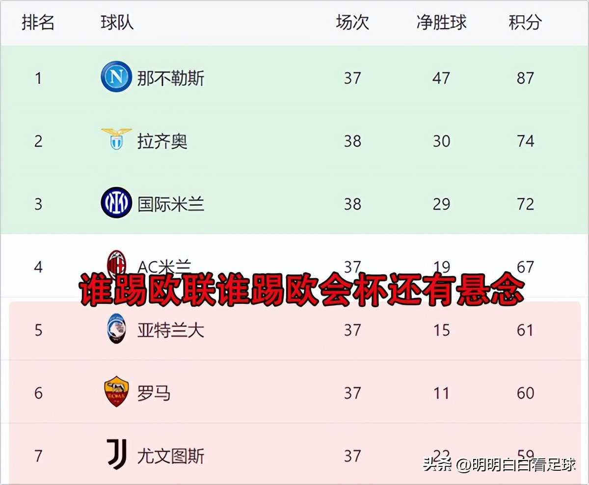 因此,亚特兰大因为胜负关系处于劣势,即使与蒙扎战平,也可能跌至第七名。
