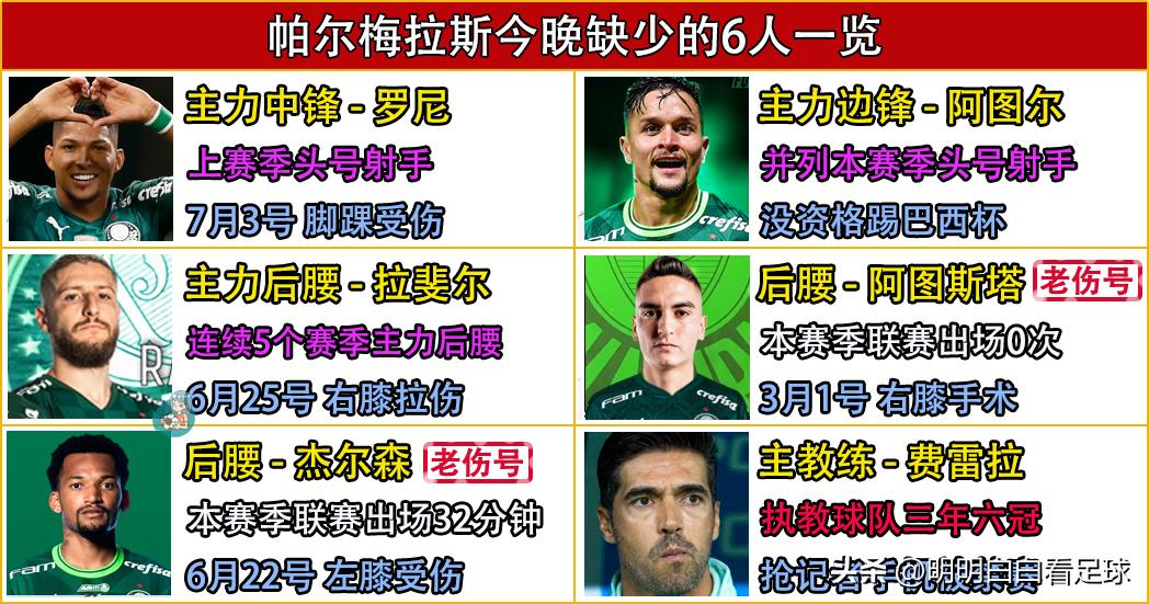 而帕尔梅拉斯虽然只有5人缺阵,但其中3人是绝对主力。