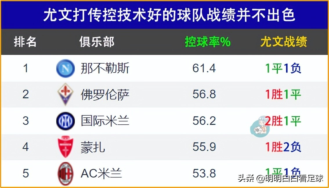 事实是:尤文本赛季对阵意甲控球率排名前五的球队,共12场比赛,战绩为4胜4平4负,仅略好于联赛表现不佳的国米,对其他球队表现均较差,甚至被蒙扎在联赛中双杀。