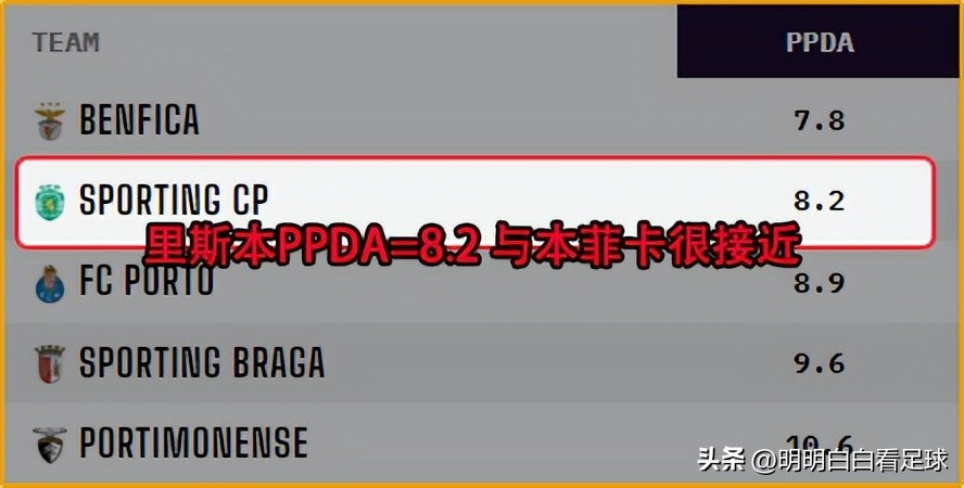 里斯本的PPDA值为8.2,位列葡超第二,和本菲卡相差无几,尤文是否会重蹈被本菲卡抢得手忙脚乱的覆辙?