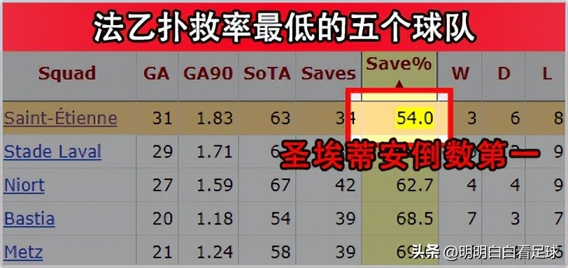 其中表现最好的德雷耶扑救率也只有63.6%,排在法乙倒数第四,别看他差,自从他受伤后,圣埃蒂安甚至连他都用不上了。