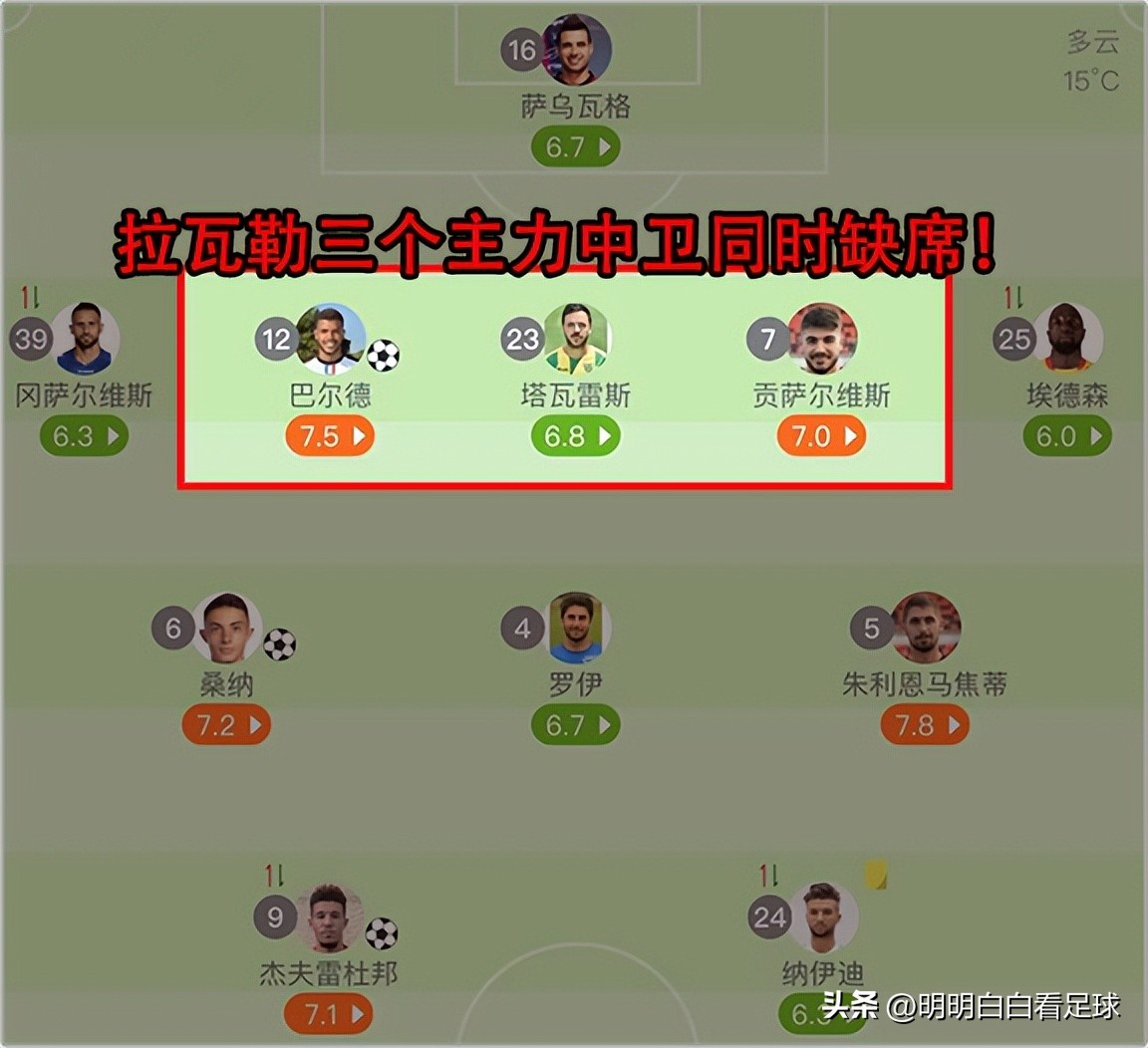 恰巧拉瓦勒今天的阵容非常糟糕。