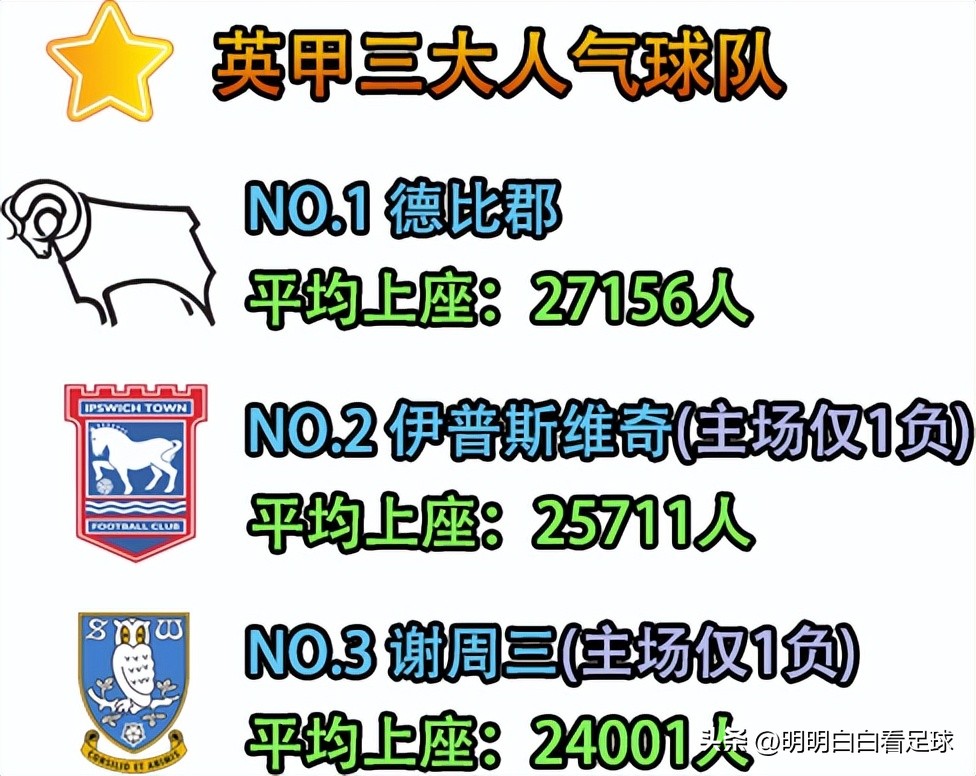德比郡本赛季表现出色,赢得了球迷喜爱,场均观众达到2.7万人,英甲最高。