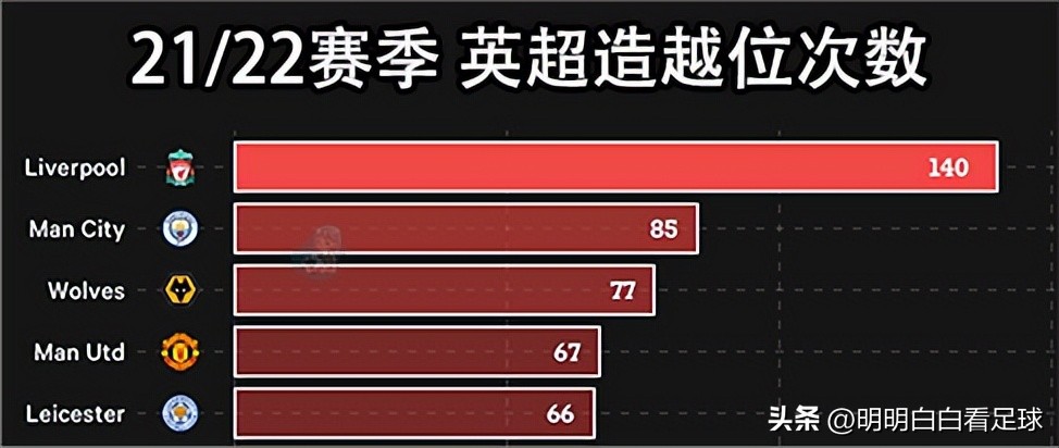 上赛季他们制造越位次数位列五大联赛第一,远超其他球队。