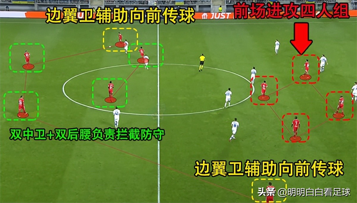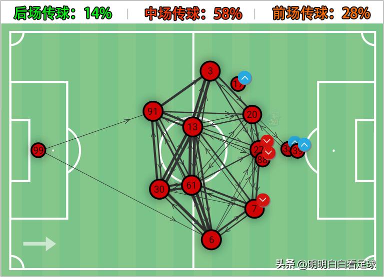 可以看到,他们整体阵型非常靠前,大量兵力集中在中前场,中场的拦截能力非常强。