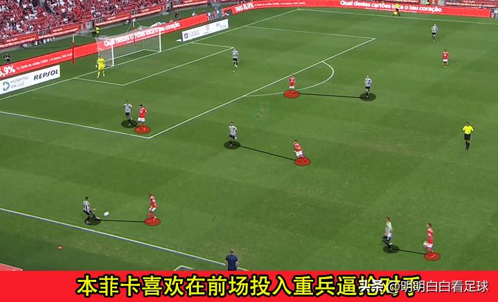 他执教本菲卡后,打法变得极其激进,看看他们的阵型站位就知道。
