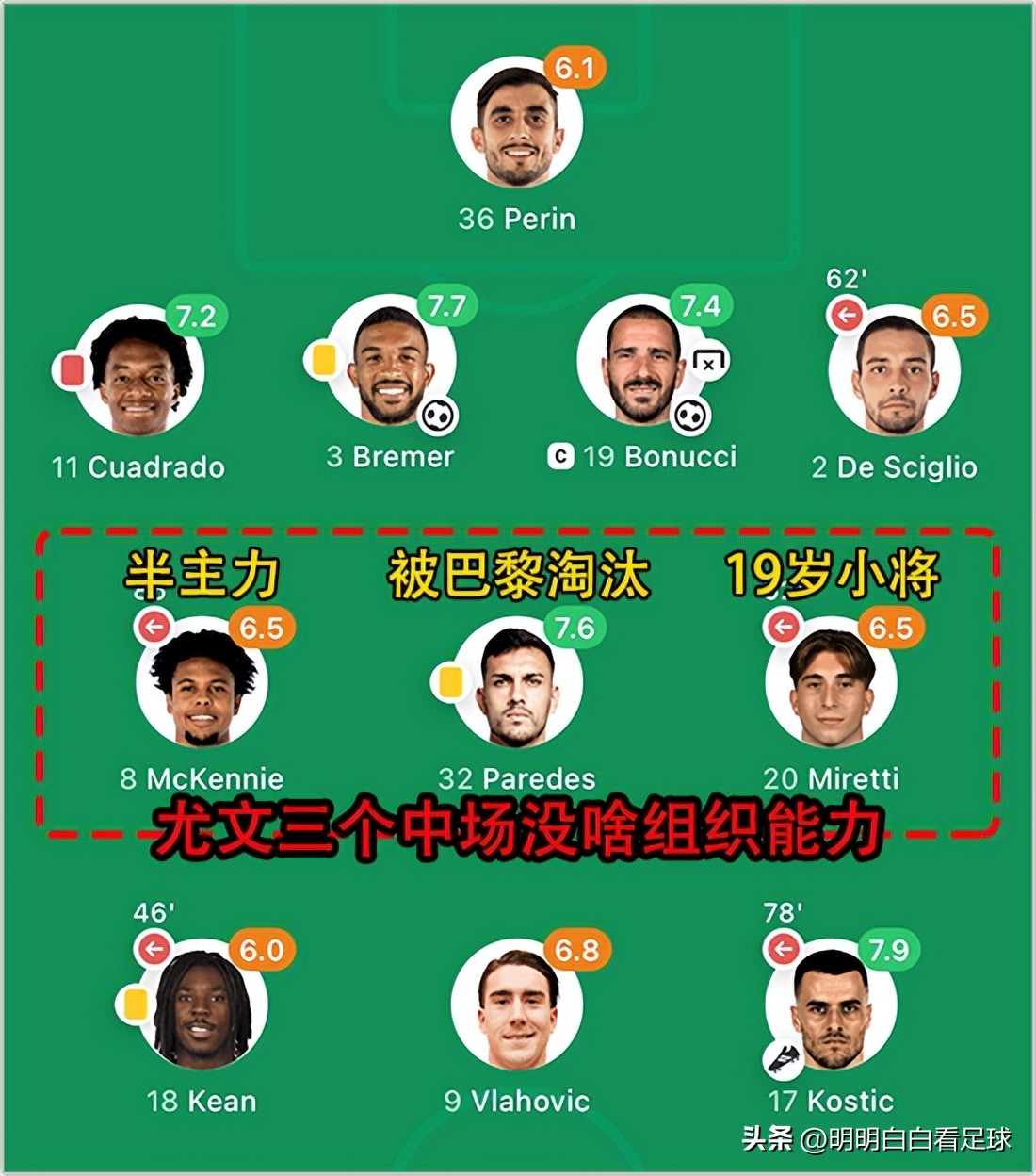 尤文这几个工兵型中场虽然进攻乏力,但防守表现尚可。