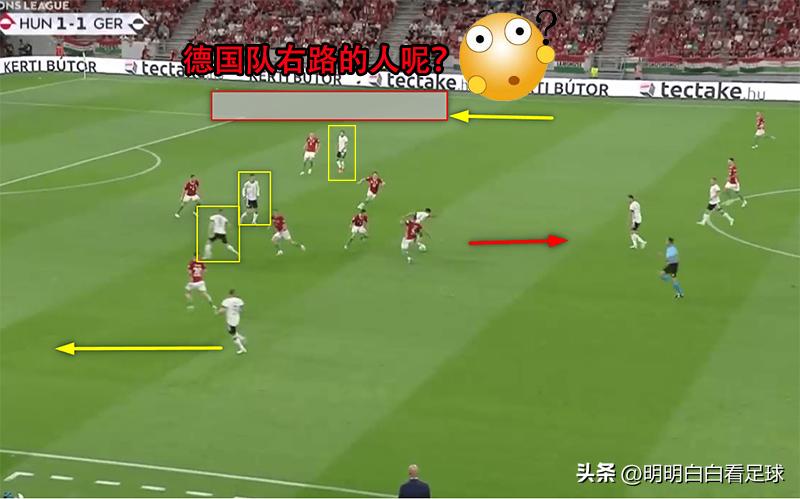 如果德国在两翼有人前插,匈牙利的防守球员就会被拉扯开来。