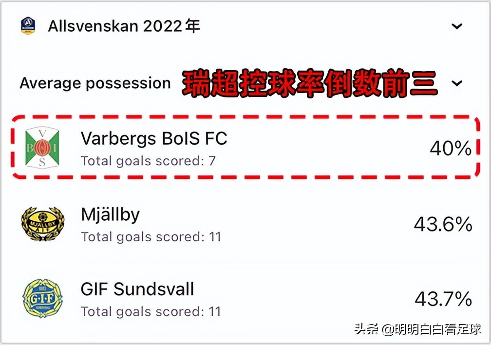而瓦尔贝里则以密集防守著称,场均控球率只有40%,是瑞超最低,打法相当防守反击。