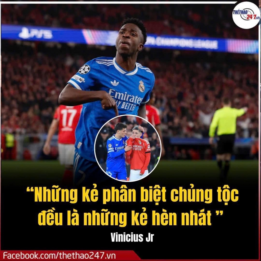 Vinícius本人在社交媒体上发表强烈声明,称种族歧视者为“懦夫”,并表达了对因庆祝进球被罚黄牌及欧足联处理程序“效率低下且无实质意义”的失望。