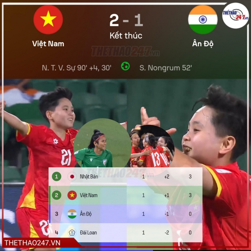 当桑菲达·农格鲁姆为印度扳平比分至1-1时,局势变得紧张且充满情感。然而,就在第90+4分钟,万秀完成梅开二度, 为红衫军团锁定2-1的胜利。 此结果使越南女足暂列C组第二,与日本女足同积3分但净胜球落后。
