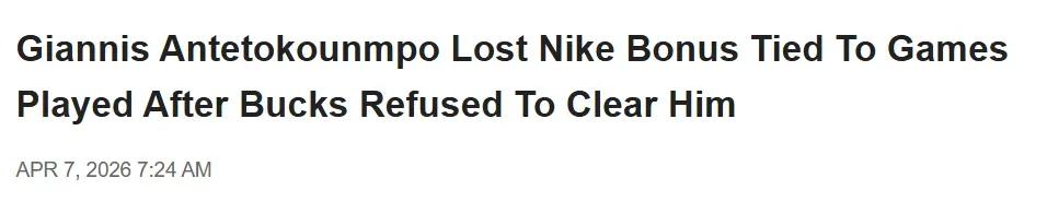 需要特别注意的是,由于本赛季参赛场次未达41场,字母哥因此损失了耐克提供的巨额奖金。