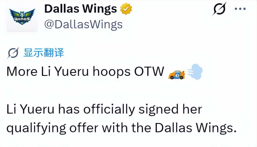 北京时间4月9日,WNBA达拉斯飞翼队正式公告,中锋李月汝与后卫格蕾丝-伯杰已接受资格报价,新赛季将回归球队。