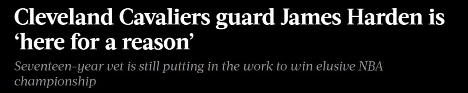 哈登结束漫长的个人投篮加练时,两辆载满队员的大巴已在晨训后返回克利夫兰骑士队入驻的酒店。这位已在NBA效力17个赛季的骑士后卫,依然在额外练习投篮,他期待这份投入最终能有所回报,为他带来职业生涯中唯一缺少的成就:一座总冠军奖杯。