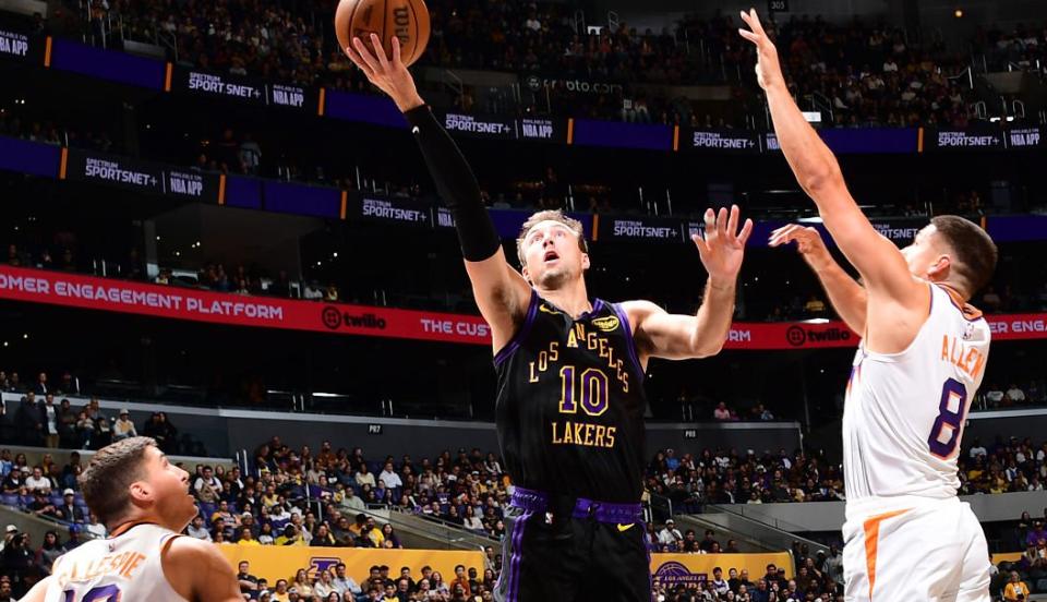 第二节,奥尼尔抛投得分,范德比尔特扣篮,阿伦打成2+1后不久伤退返回更衣室。奥尼尔连取5分,太阳打出12-2攻势,反超湖人。肯纳德中投命中,狄龙连得6分,詹姆斯上篮得手,肯纳德连投带罚,双方比分紧咬。科菲被判技术犯规,八村垒两罚全中,艾顿补篮得分,湖人一波7-0,领先太阳8分。狄龙中投命中,科菲勾手得分,詹姆斯状态火热,连进三球,半场结束,湖人57-48领先太阳。