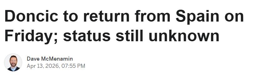 北京时间4月14日,据知名记者Shams报道,东契奇在西班牙接受了针对左腿筋二级拉伤的多次注射治疗,经过一周休养后,将于本周六(北京时间,下同)返回洛杉矶。他或许无法出战本周末开始的NBA季后赛首轮赛事,但会继续随队同行。