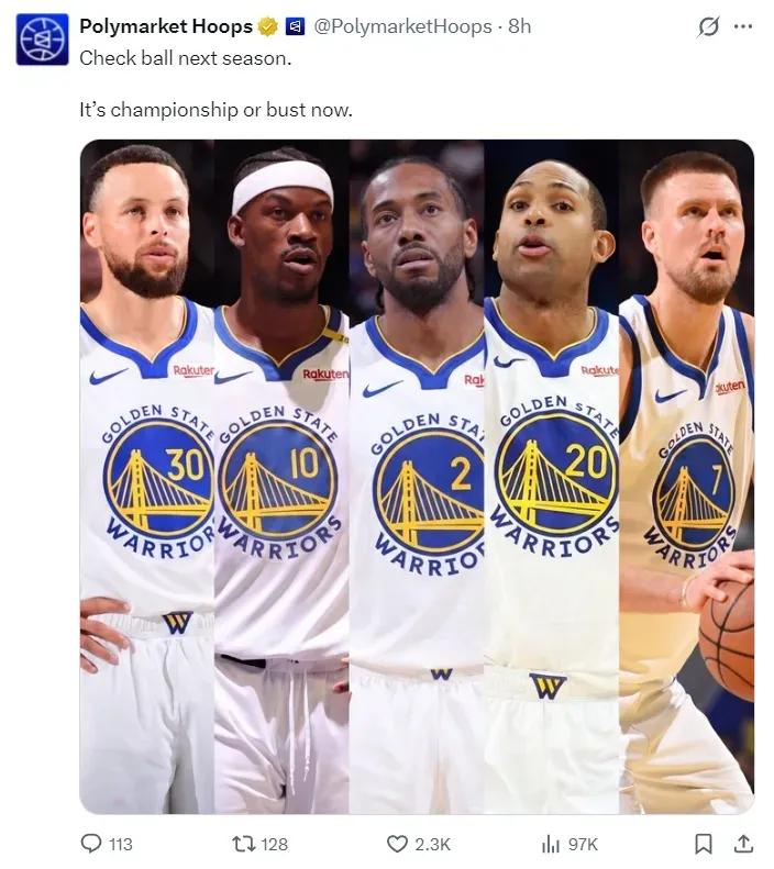 已有惯于操心的美媒列出了勇士新的核心五人阵容,包括库里(38岁)+巴特勒(36岁)+伦纳德(34岁)+霍福德(39岁)+波尔津吉斯(30岁),平均年龄35.4岁。