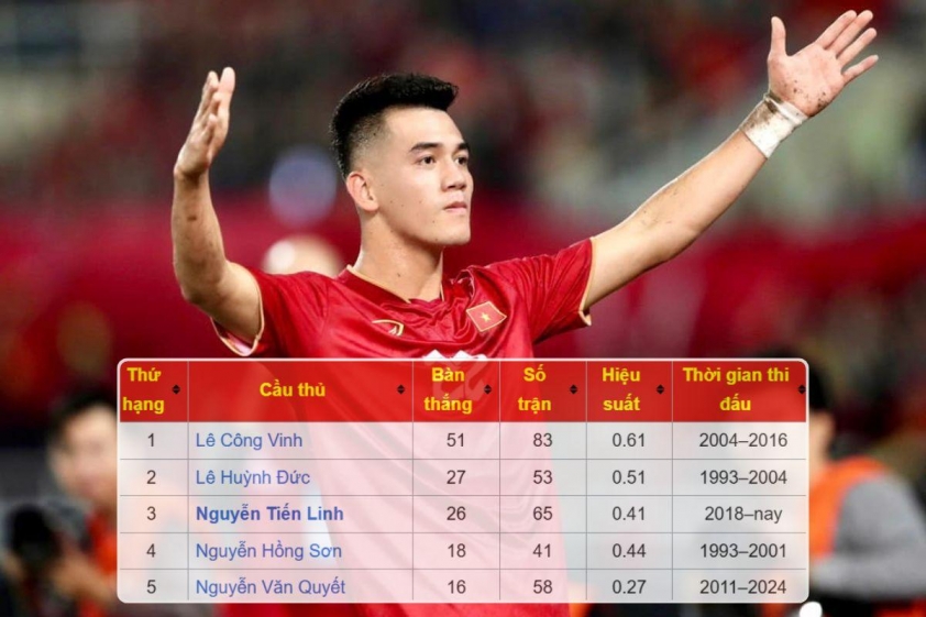 此外,进灵还多次入选越南联赛和东盟杯的明星阵容,同时荣获2022年东盟杯最佳射手及2018年、2024/25赛季越南联赛最佳射手称号。他也是2023/24赛季国家杯的最佳射手。