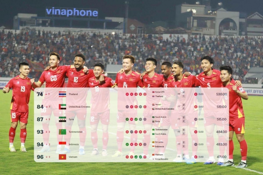 从当前形势看,越南无疑正瞄准超越泰国的目标,双方差距仅剩27分。值得注意的是,越南国家队刚跻身世界百强,并在马来西亚被判负后获得额外加分。