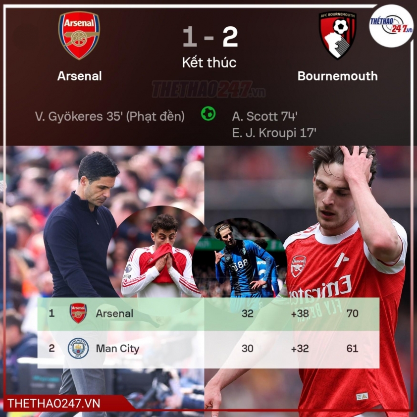 然而,当许多人期待阿森纳逆转局势时,伯恩茅斯却在酋长球场制造了震惊。亚历克斯·斯科特打入制胜球锁定2-1胜利,帮助 这支英格兰南部球队连续第二次在阿森纳主场获胜。