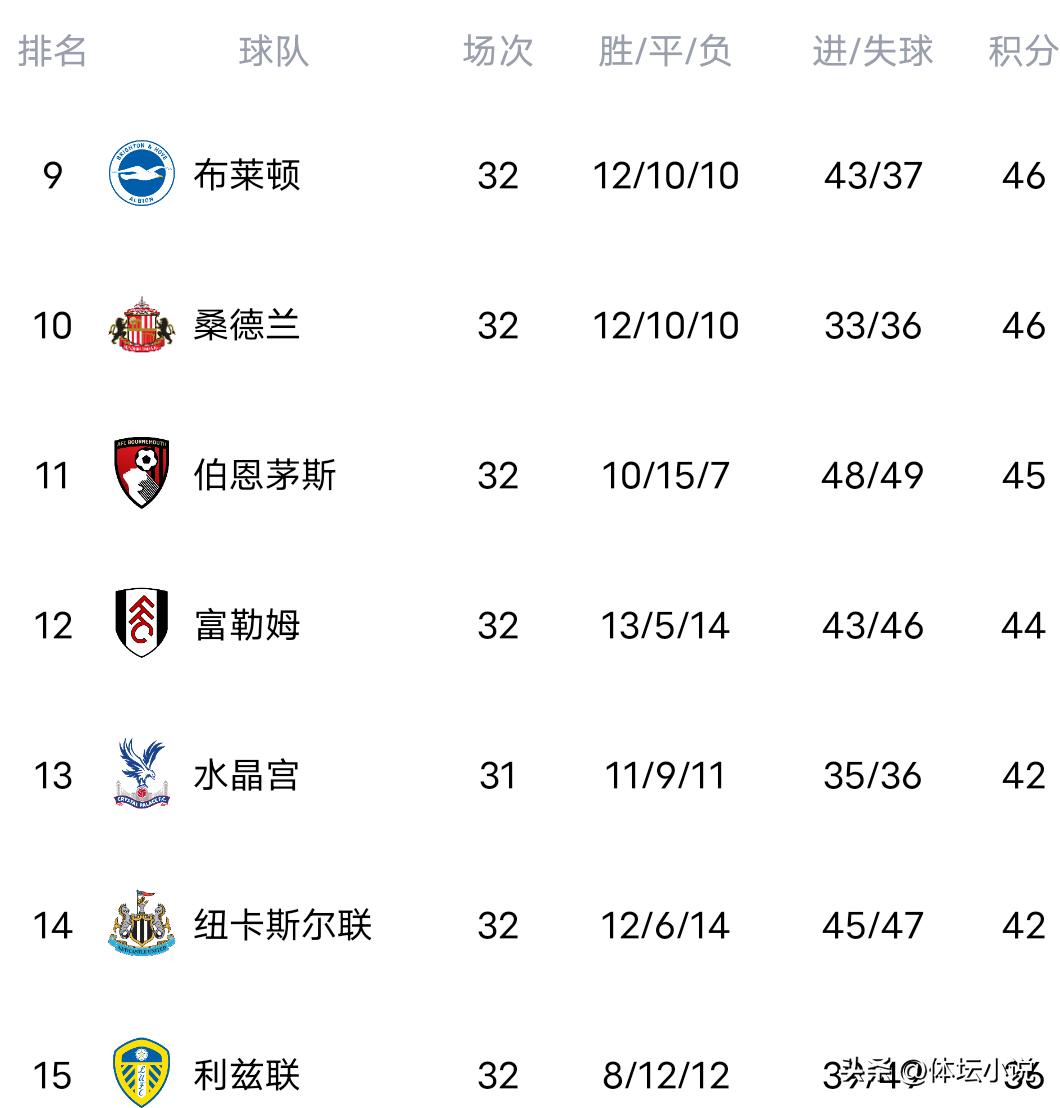 北京时间4月14日,英超第32轮比赛落幕。在收官战中,曼联1-2意外不敌利兹联,输掉玫瑰德比,英超积分榜因此再度动荡。曼联排名第三,冠军争夺激烈悬念丛生,第五名竞争积分差距微弱,强队热刺竟落至降级区,位居第18位!
