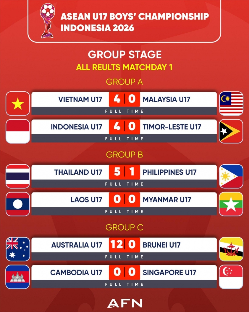 印尼队同样取得4比0胜利,与越南U17队在2026年东南亚U17锦标赛小组赛的表现相似。