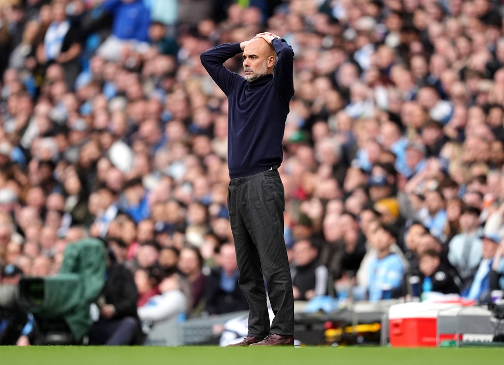 目睹弟子犯下严重错误,瓜迪奥拉难以置信。曼城主帅抱头叹息,因球队以如此令人震惊且难以接受的方式葬送了领先优势。