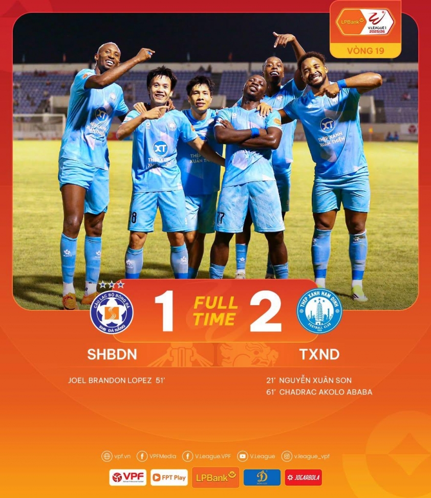 输给Nam Định 1-2后,SHB Đà Nẵng继续在积分榜末尾停滞不前。