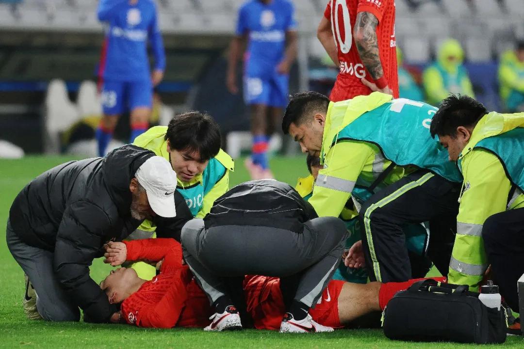 海港教练组随即向主裁判李海新申请启动脑震荡特殊换人规则。全程目睹这次伤情转换的主裁判李海新面露无奈笑容,同意了换人申请。第77分钟,傅欢替补登场,上海海港得以保持11人完整阵容应战,避免了少打一人的绝境。