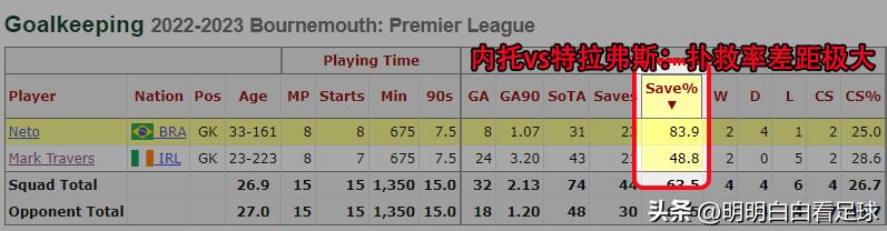 顶替他成为主力的内托扑救率高达83.9%,在英超主力门将中排名第一。