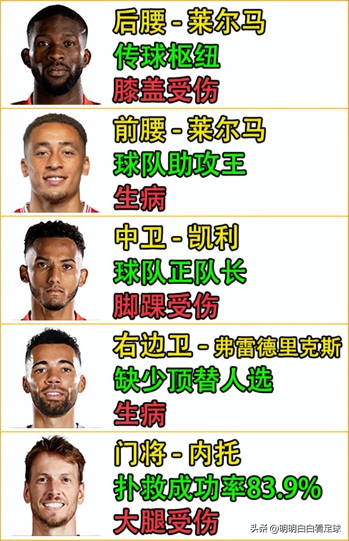 这些关键球员同时缺阵,必然削弱球队的出球能力。