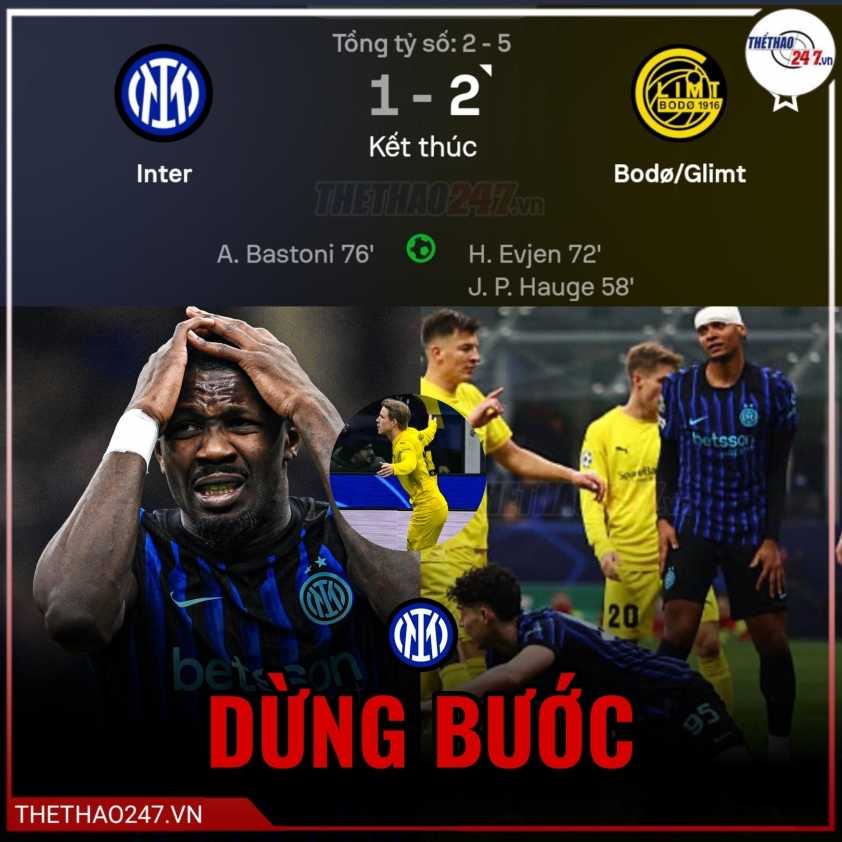 延斯·彼得·豪格和哈康·埃夫延为挪威球队建功,帮助他们建立了安全的领先优势,尽管国际米兰在比赛末段奋力反扑,博多/Glimt依然守住优势,首次历史性进入 欧冠16强。